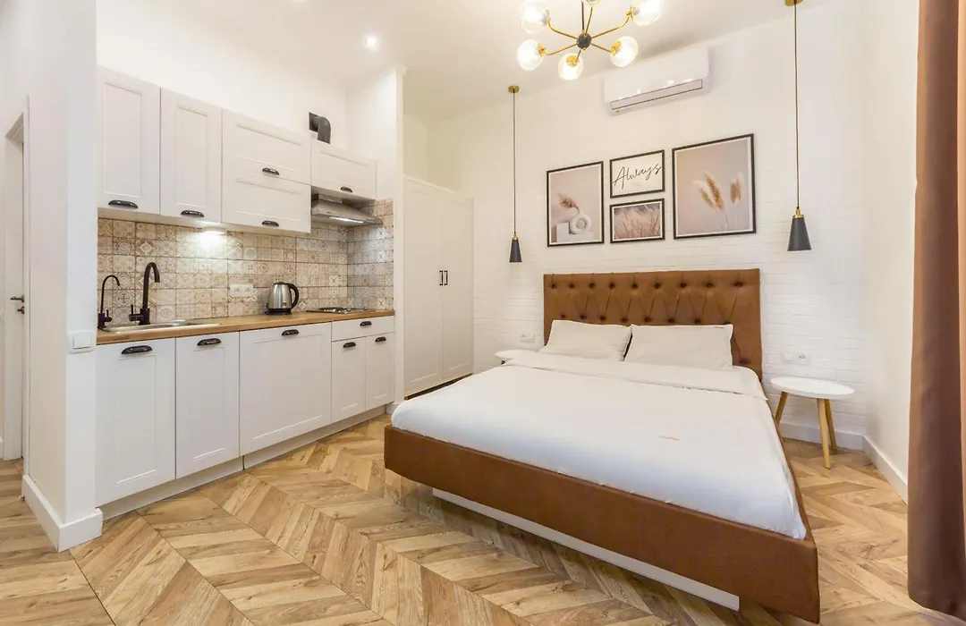 Дизайнерські апартаменти у центрі располагают удобствами для самостоятельного приготовления пищи, включая мини-кухню с электрочайником, холодильником и кухонной утварью. Гости также могут сесть на автобус на автобусной остановке Ploshcha Ukraiinskyh Heroiiv Subway, расположенной всего в 300 метрах, чтобы посетить соседние районы Киева.